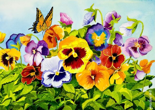 Image: Pansies with Butterfly, Janis Grau available on Fine Art America